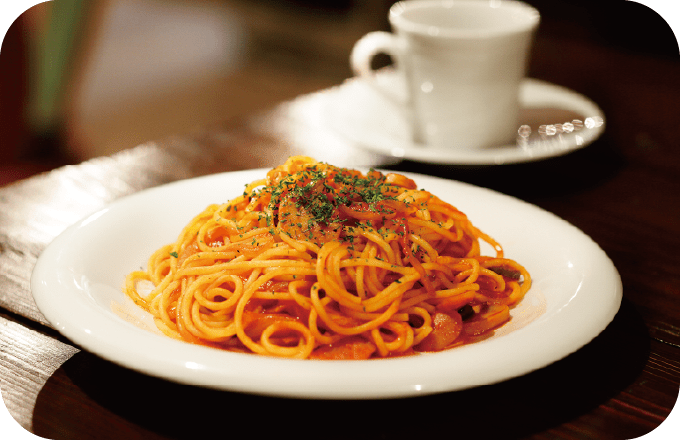 築100年以上の蔵を改装した、レトロな雰囲気のカフェ。ほっとする味わいのナポリタンや手づくりデザート…