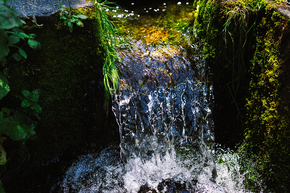 平安時代の高僧・慈覚大師が、奥州を巡って布教を行う途中、旅の疲れを癒すために立ち寄ったと伝えられる由緒ある水場です。年間を通して安定した水量を誇り、水中には梅花藻(バイカモ)が育つほど澄んだ流れが保たれています。現在もこの湧水を生かし、ワサビの栽培が行われるなど、自然の恵みが今なお暮らしに息づいています。